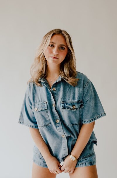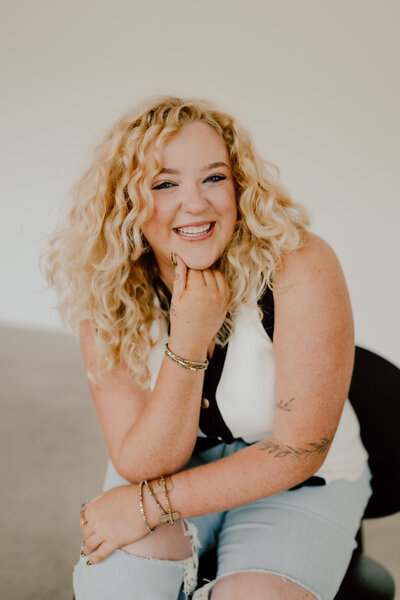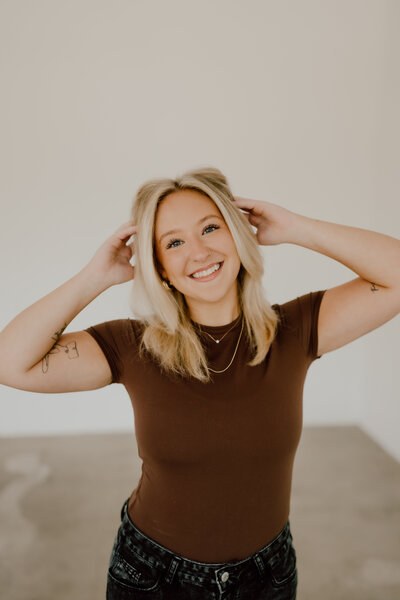 Madelyn is born and raised in Des Moines, and went to cosmetology school in Ames. She has been with the company since 2021, and has since been certified in hand tied extensions and tape in extensions. Her passion is cuts and colors that work with your style day to day, giving you a style that grows with you.